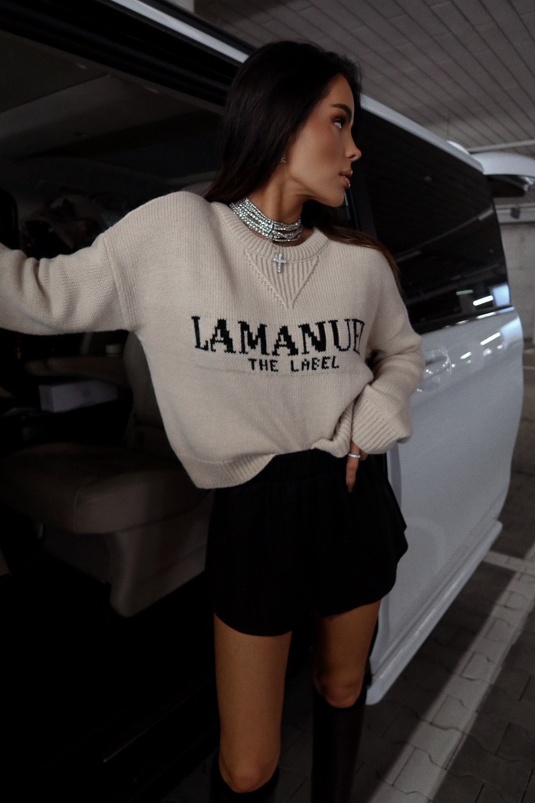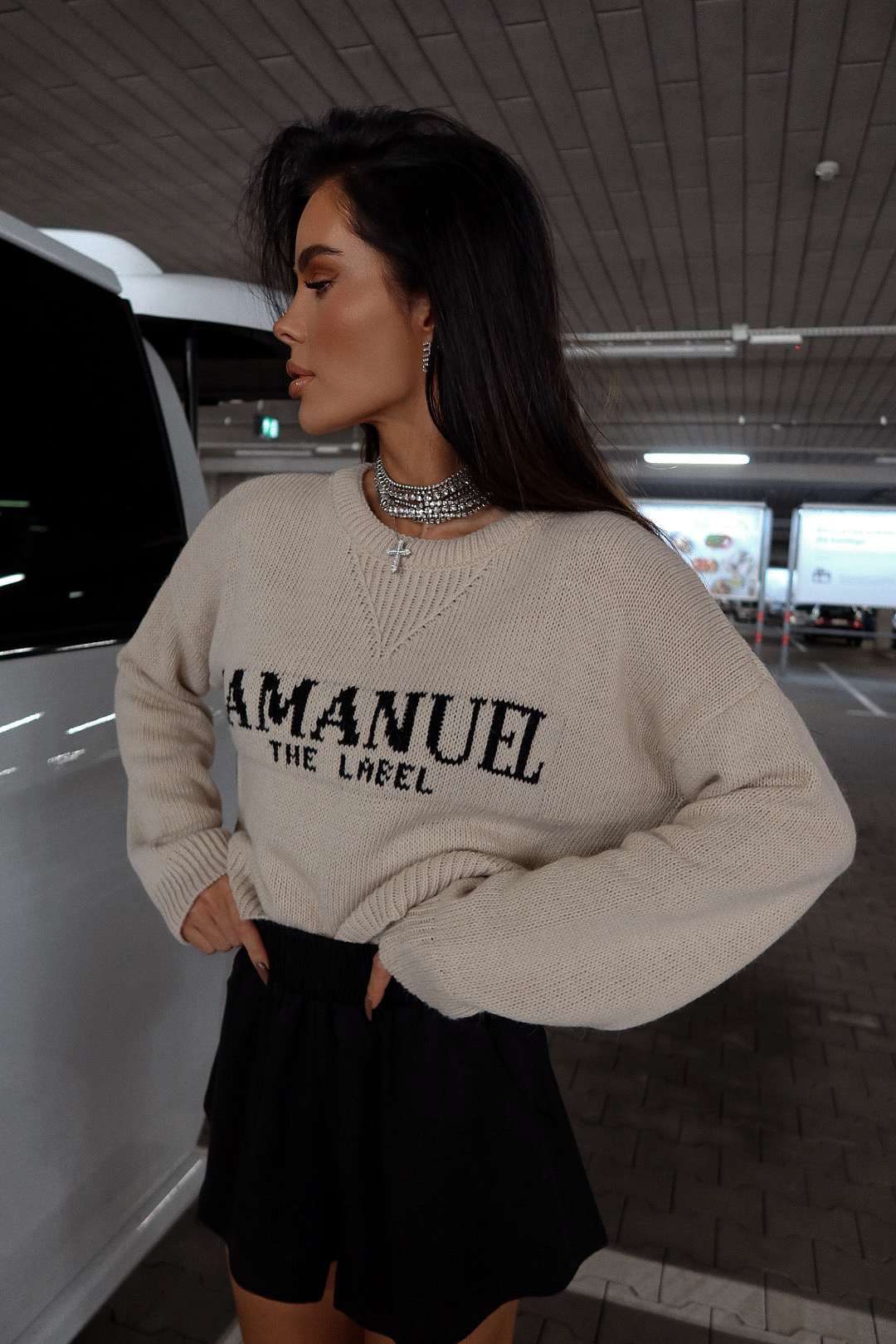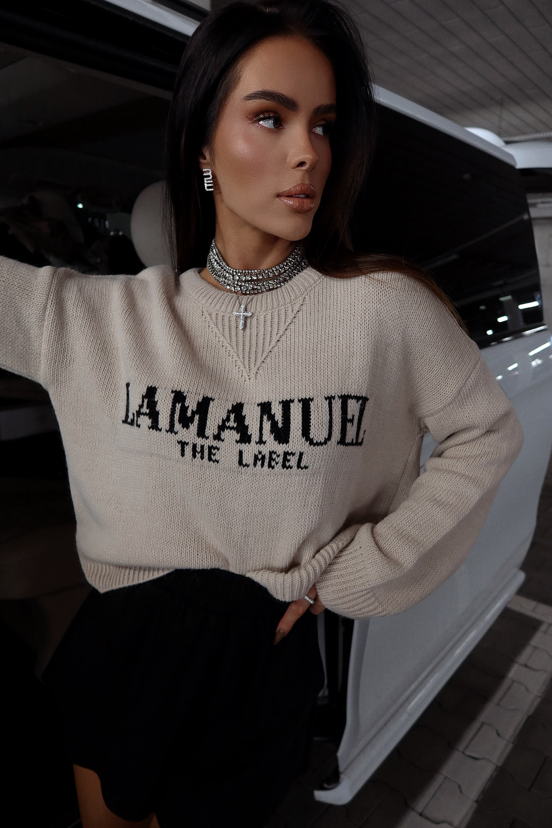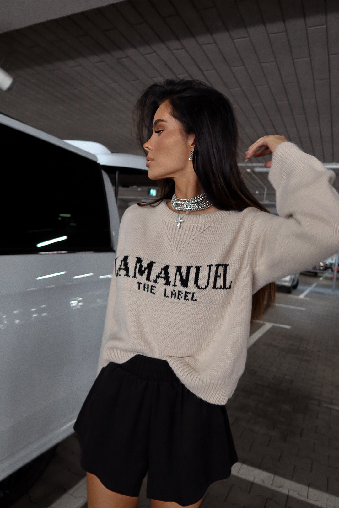 Luźny, dzianinowy sweter z dużym logo, który łączy wygodę z wyrazistym stylem. Obniżona linia ramion i miękka struktura materiału nadają mu nonszalancki charakter. Idealny do miejskich, codziennych stylizacji — wygląda świetnie zarówno z szortami, jak i ulubionymi jeansami.