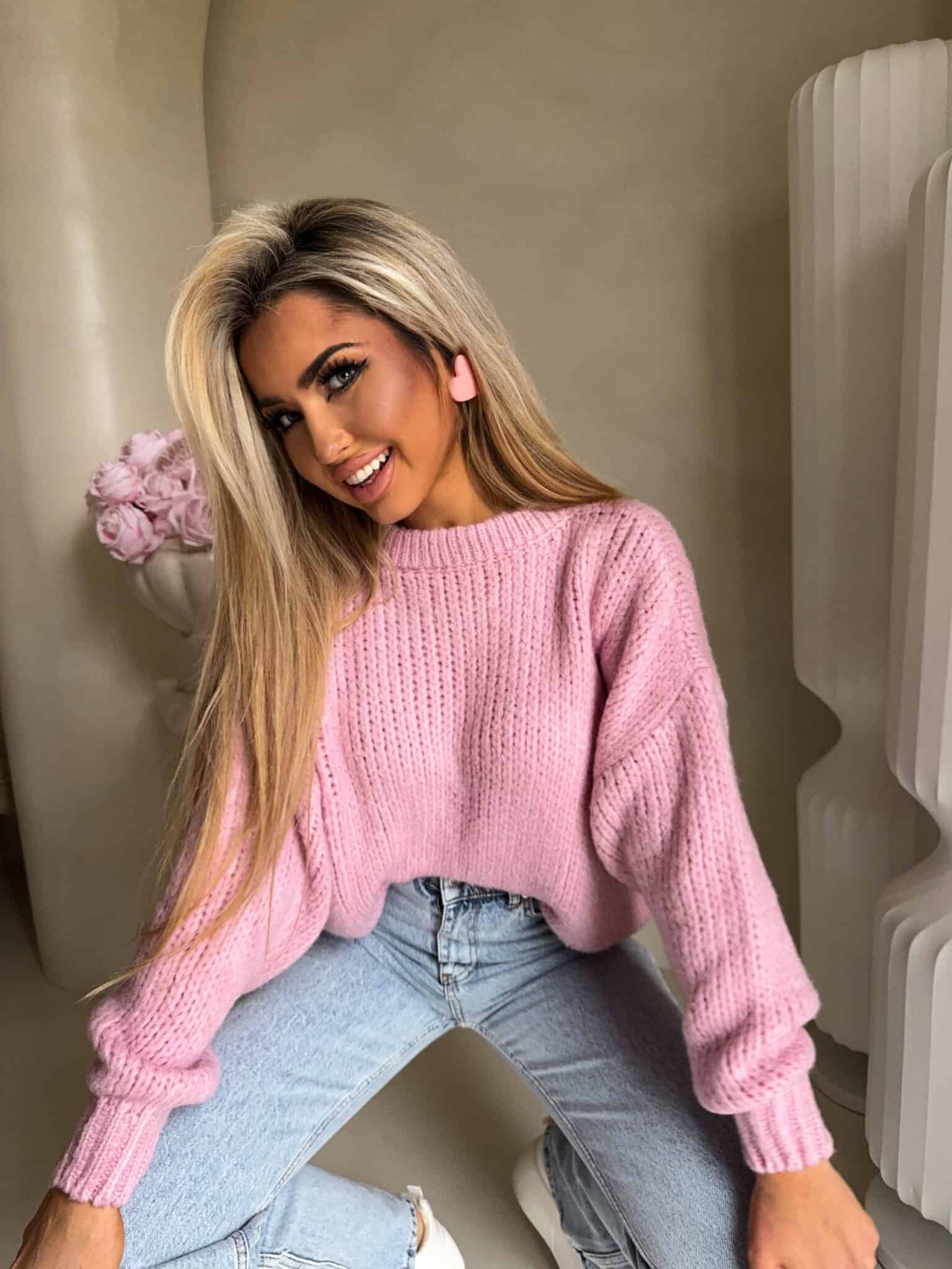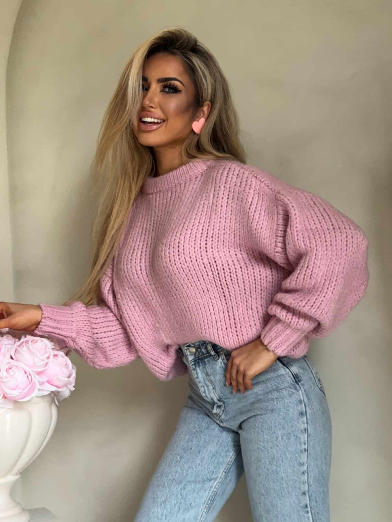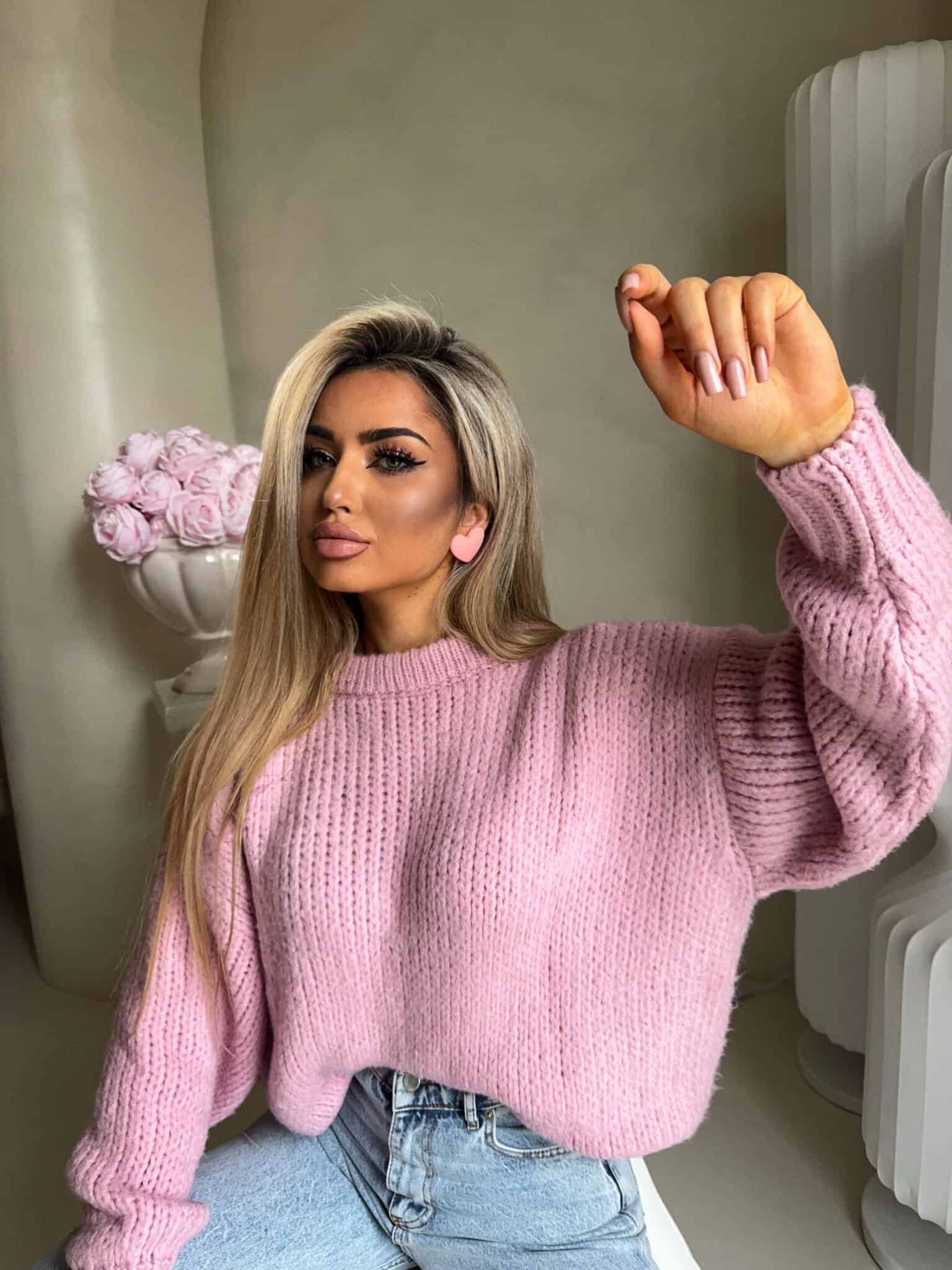 Sweter o lekko oversize’owym kroju, wykonany z miękkiej, przyjemnej w dotyku dzianiny. Opuszczona linia ramion nadaje mu luźny, nowoczesny charakter. Model posiada długie, obszerne rękawy zakończone elastycznymi ściągaczami, które zapewniają wygodę noszenia. Dół swetra oraz klasyczny, okrągły dekolt również wykończone są ściągaczem.