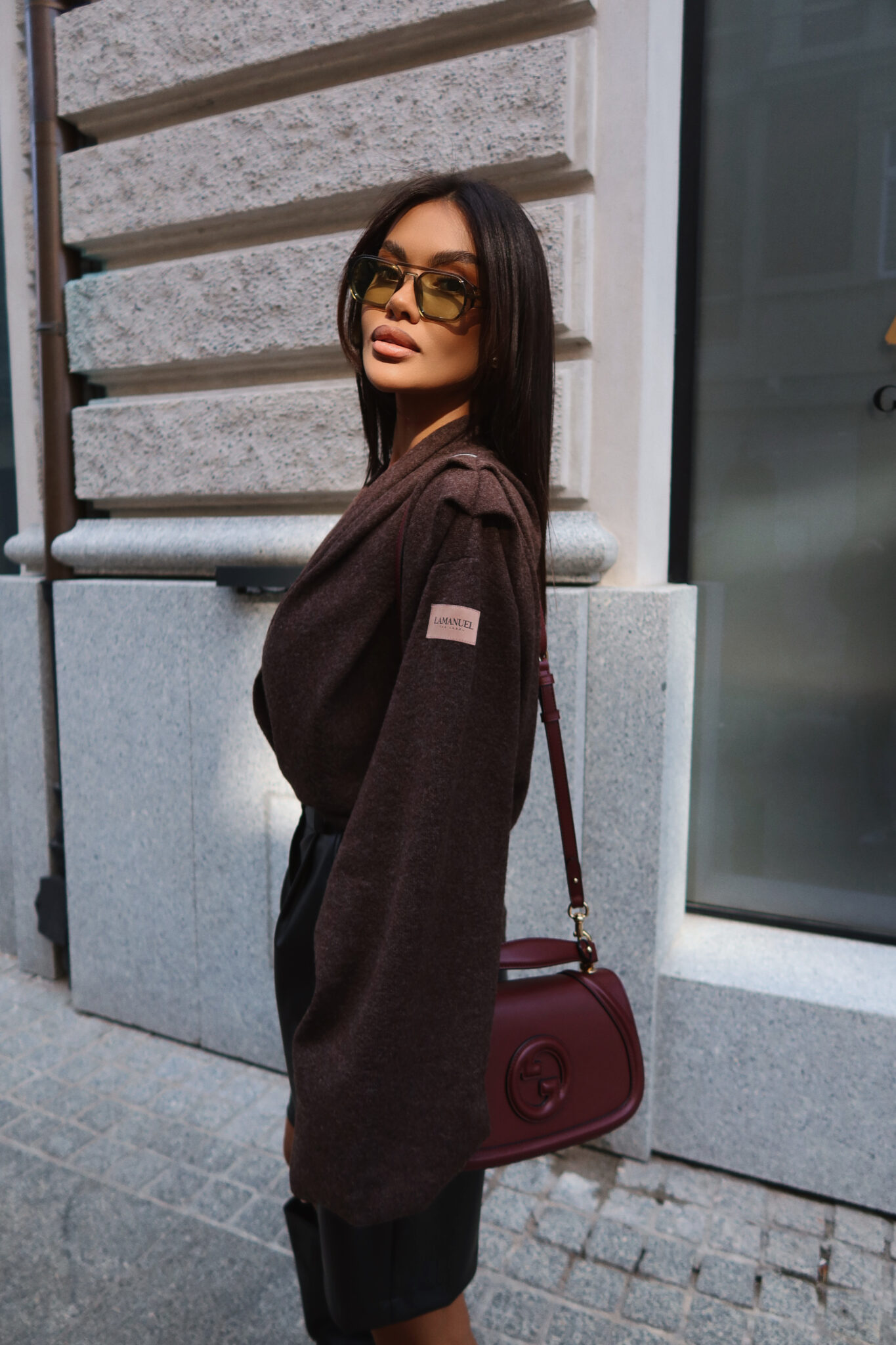 Miękki kardigan o swobodnym, nieco oversize’owym kroju, który możesz nosić luźno lub lekko wpuszczony w spodnie, jeśli chcesz nadać sylwetce formy. Szerokie rękawy i strukturalna linia ramion nadają mu charakteru, a przyjemny w dotyku materiał otula jak ciepły szal. Idealny na chłodniejsze dni – wygląda stylowo bez wysiłku, niezależnie od tego, z czym go zestawisz. Pasuje od rozmiaru XXS do XL.