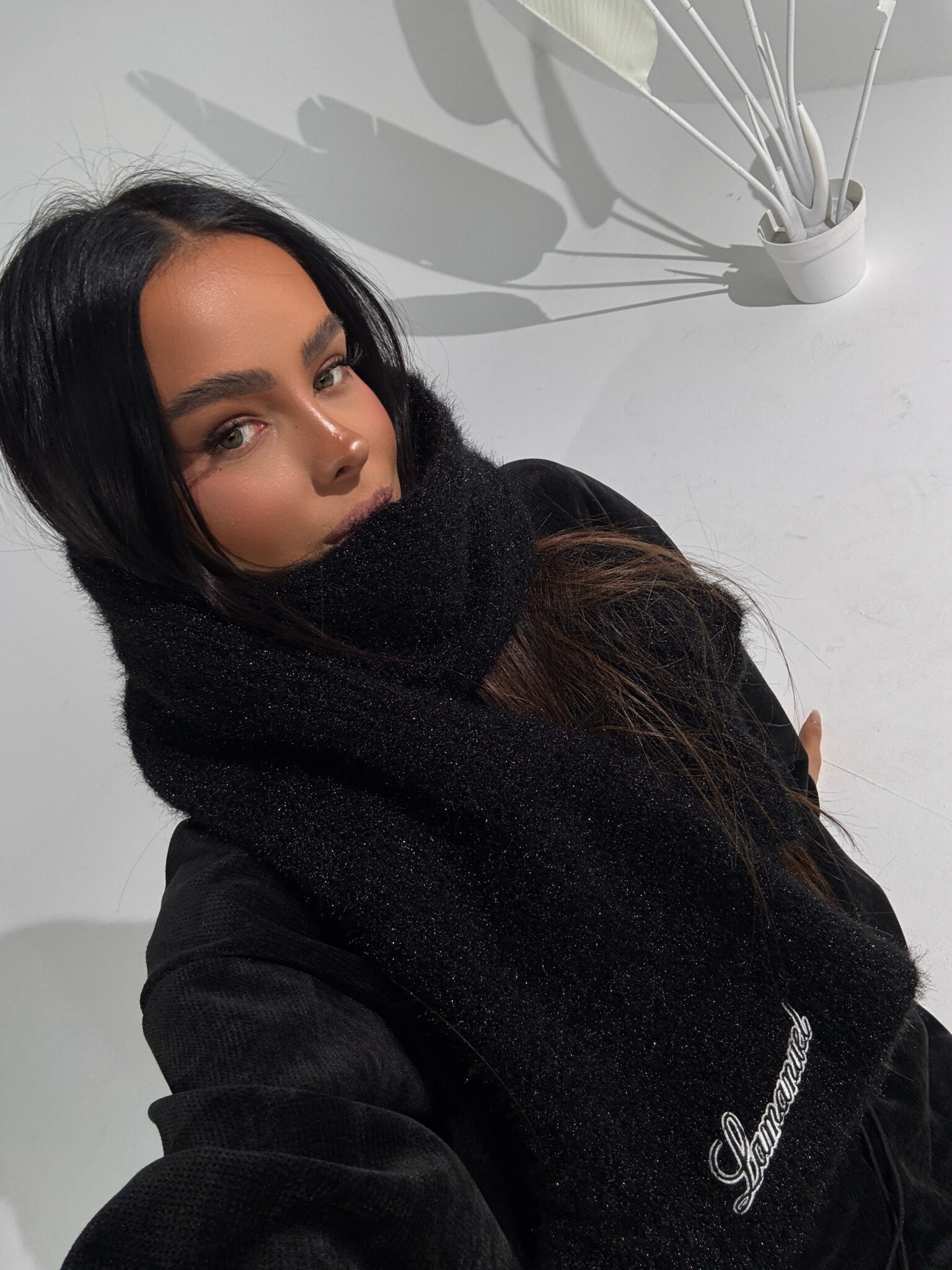 Szalik o puszystym wykończeniu i wyrazistym logo haftowanym na jednym końcu. Wykonany z tej samej miękkiej przędzy co czapka – tworzy z nią idealny duet, ale świetnie wygląda również solo. Lekki, ale ciepły – dobrze się układa i dodaje objętości stylizacji. Stanowi idealny dodatek do jesienno-zimowych looków, łącząc funkcjonalność z modowym charakterem. Doskonały wybór do oversize’owych płaszczy i kurtek.
