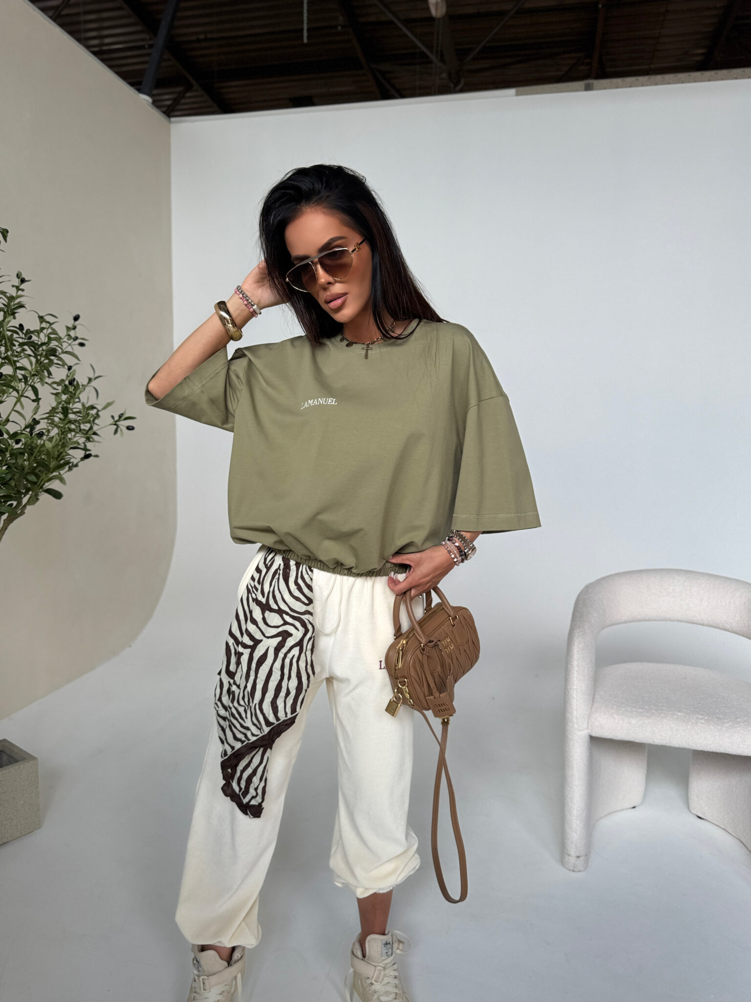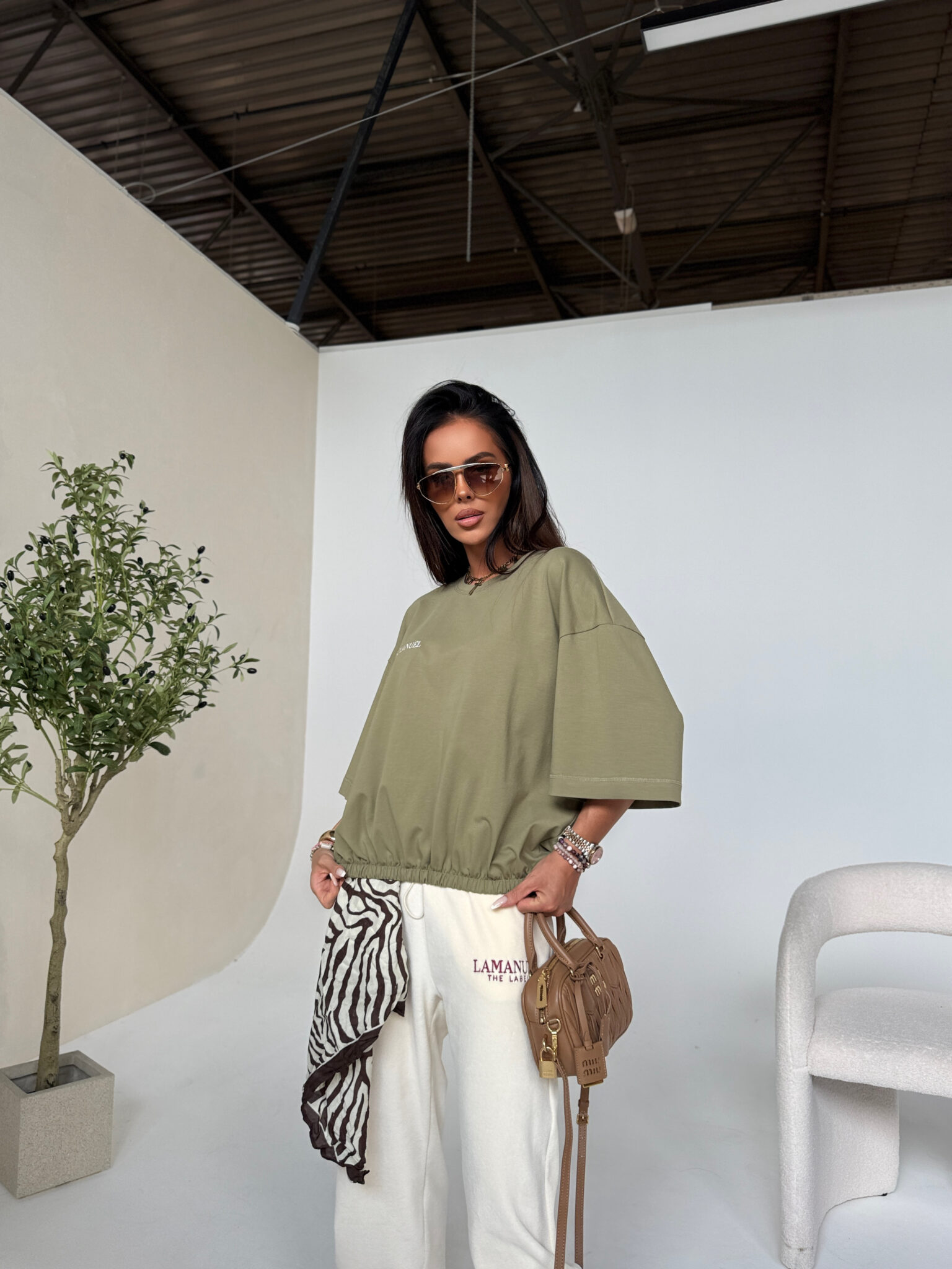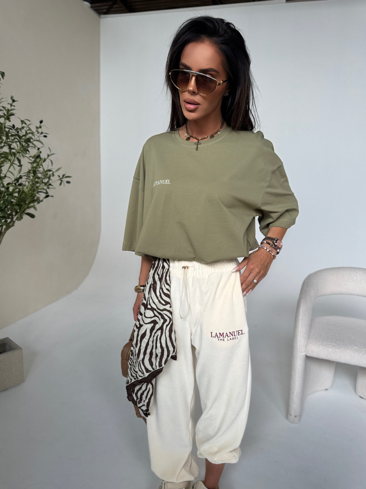 T-shirt o oversize’owym kroju z krótkim rękawem i subtelnym logo lamanuel na piersi. Uszyty z przyjemnej w dotyku bawełnianej dzianiny, zapewnia maksymalny komfort noszenia i swobodę ruchów. Dół wykończony elastyczną gumką, dzięki czemu możesz nosić go luźno lub lekko podciągnięty, eksponując talię. Uniwersalny fason sprawdzi się zarówno w sportowych zestawieniach, jak i w codziennych, minimalistycznych stylizacjach.