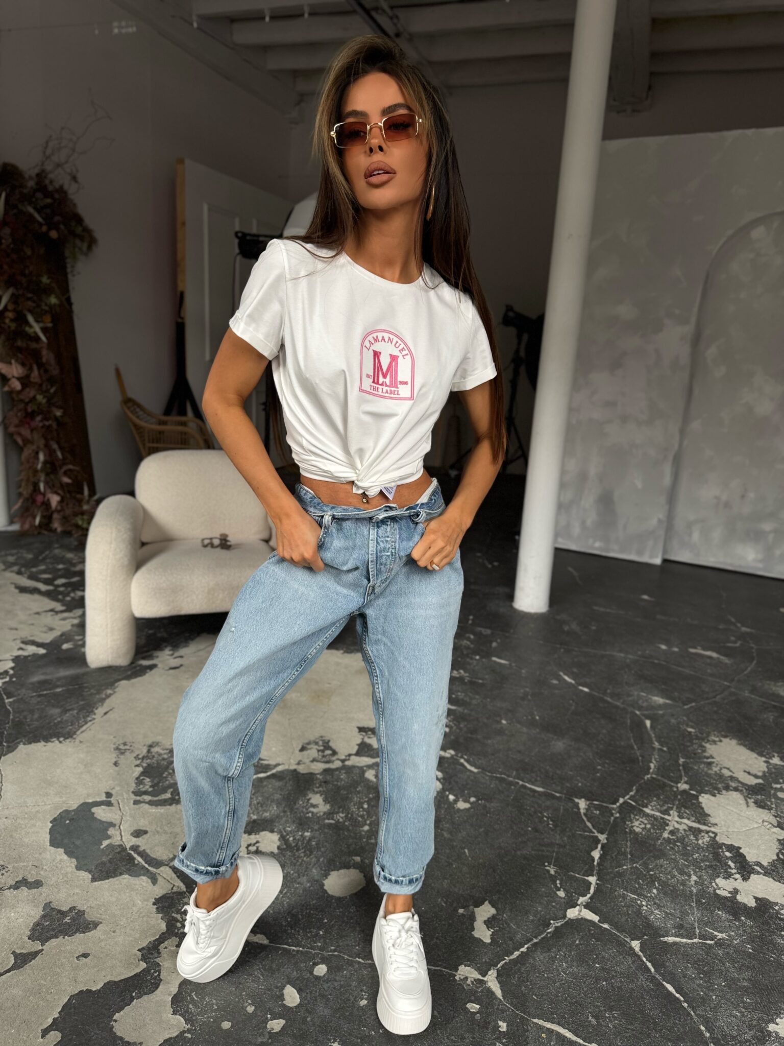 Prosty, ale efektowny T-shirt, który łączy klasyczny krój z eleganckim detalem w postaci haftowanego logo. Wykonany z miękkiego, oddychającego materiału, zapewnia wygodę przez cały dzień.