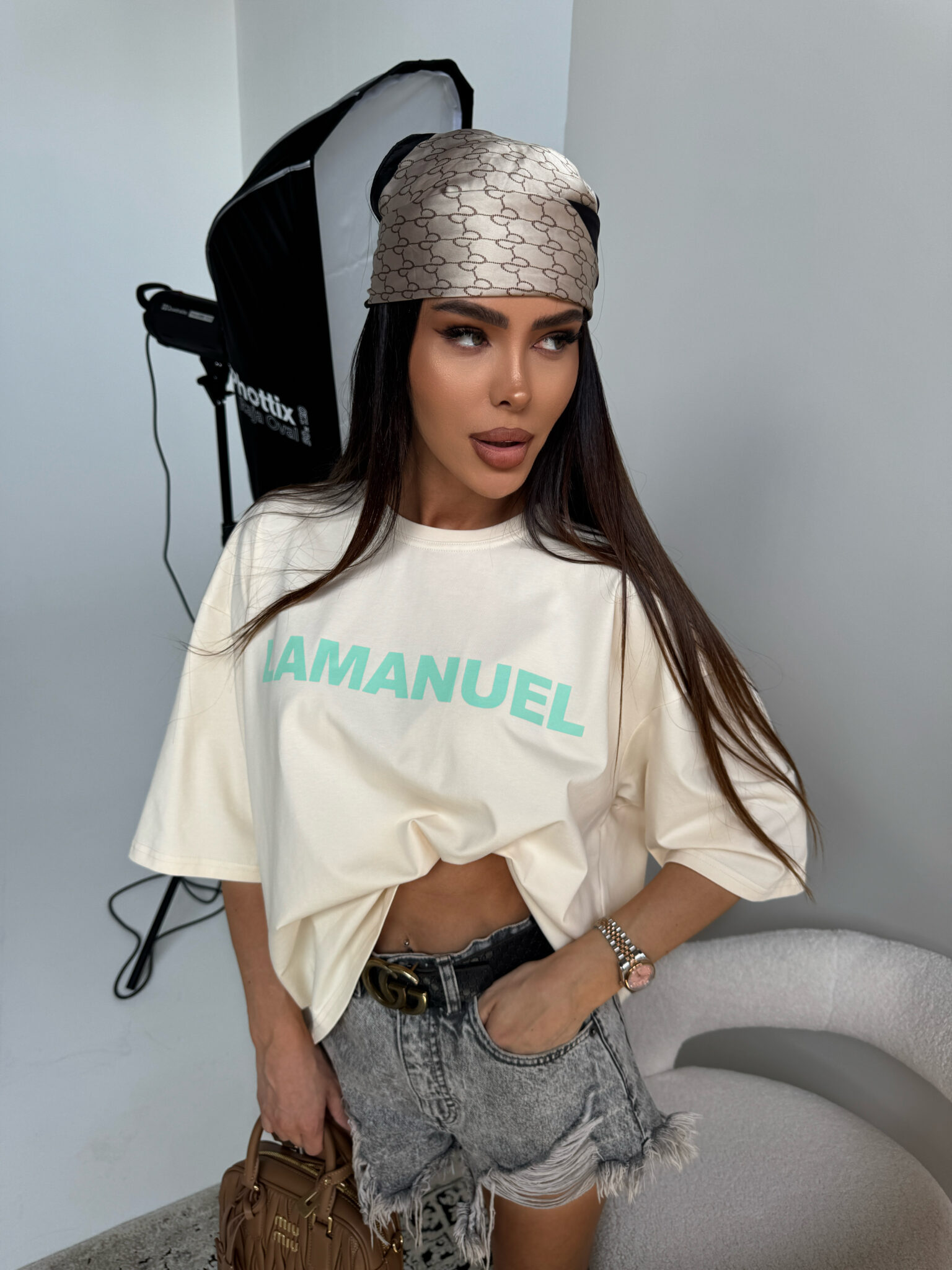 Oversize’owy T-shirt o luźnym kroju wykonany z wysokiej jakości bawełny, zapewniającej wygodę noszenia i swobodę ruchów. Prosty fason z lekko obniżoną linią ramion, który świetnie układa się na sylwetce i pasuje do różnych stylizacji – zarówno sportowych, jak i bardziej casualowych. Na przodzie nadrukowane logo LAMANUEL w kontrastowym wykończeniu, które przyciąga wzrok i nadaje charakteru. T-shirt sprawdzi się zarówno w zestawieniu z dresami, legginsami, jak i z jeansami czy szortami.