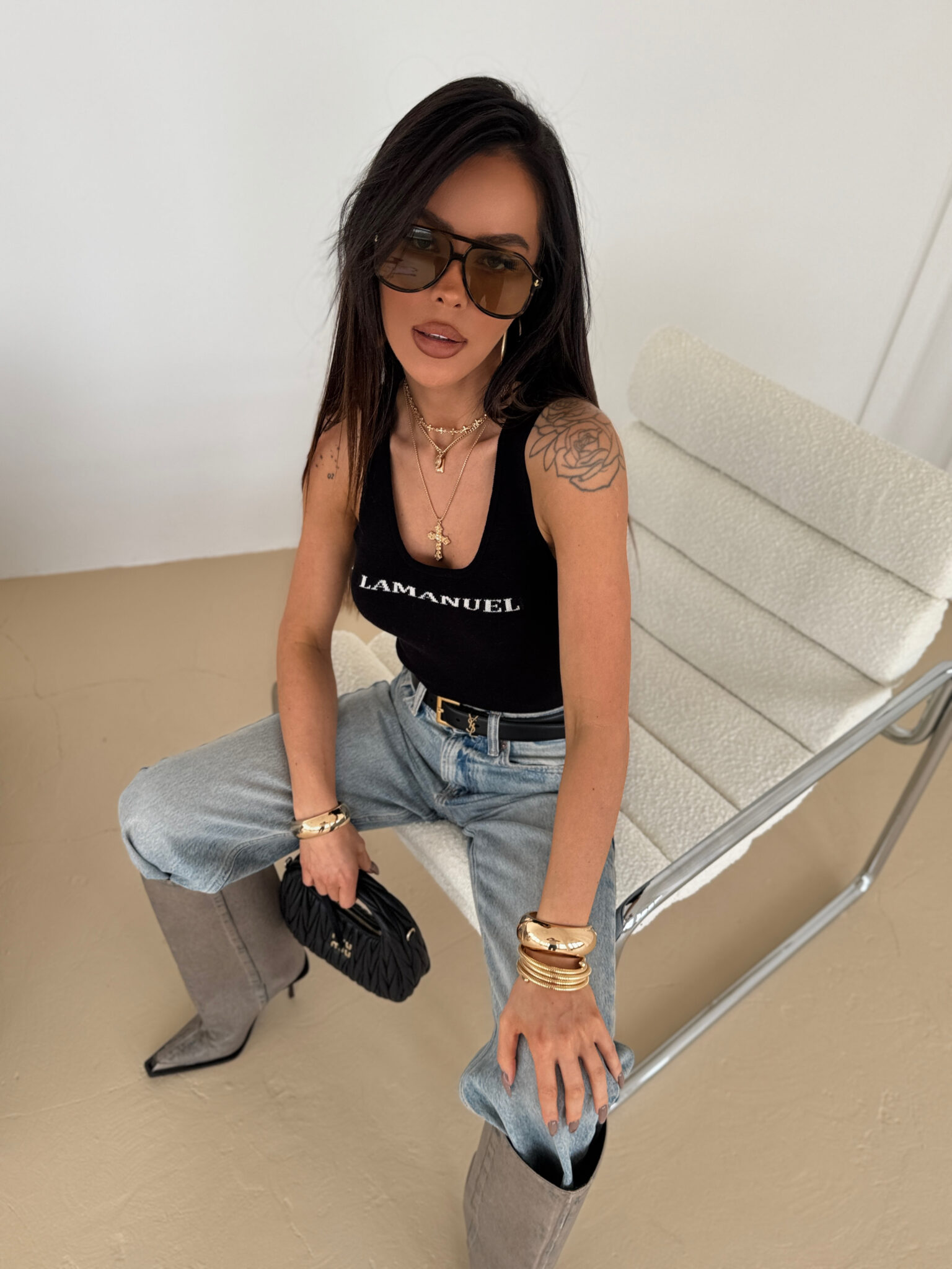 Ten top został wykonany z wysokiej jakości przędzy dziewiarskiej, co sprawia, że jest niezwykle miękki i elastyczny, idealnie dopasowując się do sylwetki. Jego klasyczny krój bez rękawów podkreśla ramiona, a subtelne logo wykonane w technice dzianinowej dodaje mu unikalnego charakteru. Dzięki elastycznemu wykończeniu świetnie układa się na ciele, nadając stylizacji nowoczesny i dopracowany wygląd. To doskonały wybór zarówno na casualowe stylizacje, jak i eleganckie zestawy w połączeniu z marynarką czy jeansami.