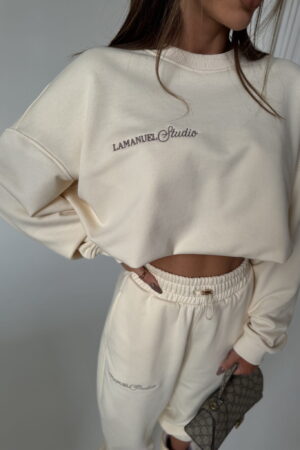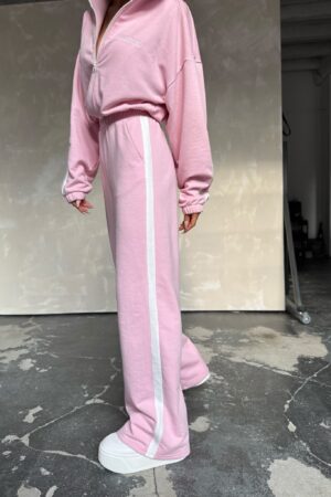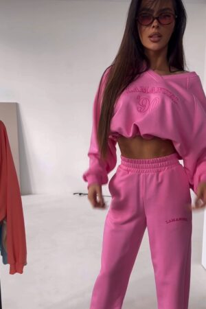 Komplet dresowy damski. Bluza z dekoltem w serek bez kaptura nadaje lekkości i subtelnie podkreśla szyję, a jej luźniejszy krój zapewnia swobodę ruchów. Klasyczne dresowe spodnie z kieszeniami doskonale dopasowują się do sylwetki, nie tracąc przy tym na wygodzie. To zestaw, który sprawdzi się zarówno na co dzień, jak i w bardziej dopracowanych stylizacjach