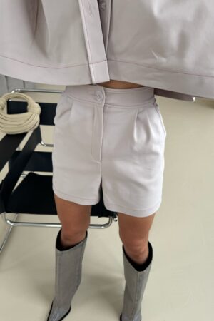 Szorty o eleganckim, a jednocześnie swobodnym kroju z wysokim stanem, podkreślającym talię. Wykonane z wysokiej jakości tkaniny, która zapewnia komfort noszenia i estetyczny wygląd. Charakterystycznym elementem projektu są kontrastowe przeszycia wykonane kolorową nicią, które dodają unikalnego akcentu i podkreślają konstrukcję szortów. Boczne kieszenie wykończone solidnymi ryglami zapewniają trwałość, a tylne, subtelnie wszyte kieszonki dodają klasycznego wykończenia. Szorty zapinane na guzik i zamek, z precyzyjnym dopracowaniem detali. Idealnie sprawdzą się w casualowych stylizacjach, jak i bardziej eleganckich zestawieniach. Można je łączyć zarówno z koszulą, jak i luźnym t-shirtem dla różnorodnych efektów stylizacyjnych.
