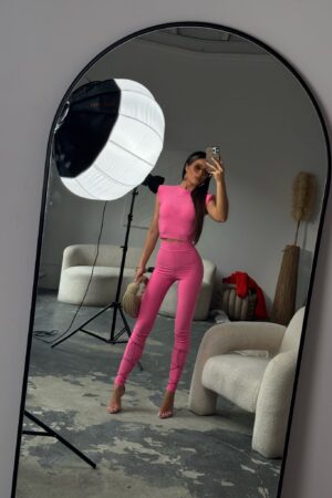 Nowoczesny komplet, który łączy minimalistyczny design z odważnym charakterem. Dopasowany top z poduszkami na ramionach i legginsy z wysokim stanem tworzą idealne zestawienie, które modeluje sylwetkę i zapewnia efektowny wygląd.