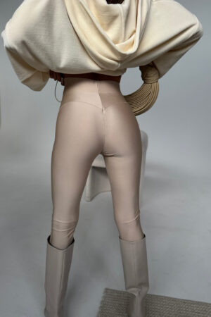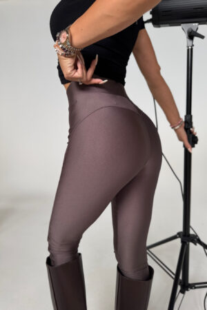 Legginsy z wysokim stanem uszyte z elastycznej lycry o subtelnym połysku, która idealnie przylega do ciała, podkreślając sylwetkę. Model wyróżnia się pionowymi przeszyciami z przodu i z tyłu, które optycznie wydłużają nogi i nadają całości bardziej dopracowanego charakteru. Z tyłu dodatkowe cięcia modelujące pośladki. Z przodu naszyta minimalistyczna metka z logo lamanuel. Nowoczesna forma, która łączy sportowy komfort z dopracowaną estetyką.