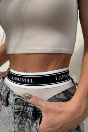 Krótki top na ramiączkach wykonany z prążkowanej dzianiny o elastycznej strukturze, która dopasowuje się do ciała i zapewnia komfort noszenia. Model wykończony szeroką, logowaną gumą z napisem LAMANUEL, która stabilizuje top i dodaje mu sportowego charakteru. Klasyczny, minimalistyczny fason sprawdzi się zarówno w stylizacjach casualowych, jak i jako baza pod bluzy czy marynarki. Produkt mocno uciągliwy!