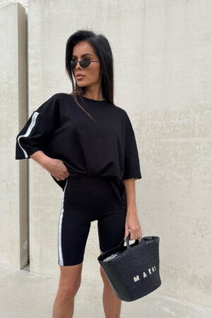 Kolarki z elastycznej, miękkiej bawełny o dopasowanym kroju, idealnie przylegające do sylwetki. Model wyposażony w szeroką, komfortową gumę w pasie, zapewniającą dobre podtrzymanie i wygodę noszenia. Po bokach nogawek wszyto taśmy z logotypem LAMANUEL, które nadają całości sportowego, ale stylowego charakteru. Świetna baza do codziennych i aktywnych stylizacji.
