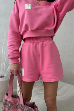 Damskie szorty wykonane z miękkiej i przyjemnej w dotyku dzianiny. Model o luźnym kroju z elastycznym, szerokim pasem, który zapewnia wygodne dopasowanie. Na nogawce znajduje się białe, wypukłe logo marki w formie litery M. Spodenki świetnie sprawdzą się zarówno w codziennych, jak i sportowych stylizacjach. Idealne do noszenia w komplecie z dopasowaną bluzą.