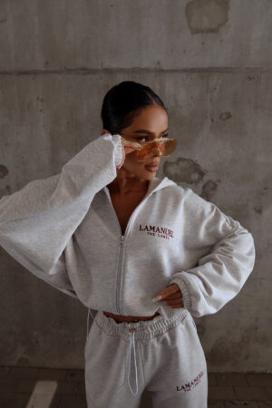 Bluza o luźnym kroju zapinana na suwak z kapturem i wszytym ściągaczem na dole, który umożliwia regulację szerokości i podkreślenie talii. Rękawy szerokie, zakończone delikatną gumką. Na piersi oraz na plecach znajduje się wyraziste logo LAMANUEL, które nadaje całości charakteru. Model wykonany z miękkiej, przyjemnej w dotyku dzianiny, idealny na co dzień i w podróży. Połącz je ze spodniami BASIC, aby mieć stylizację w całości. Bluza pasuje od rozmiaru XS do XXL.