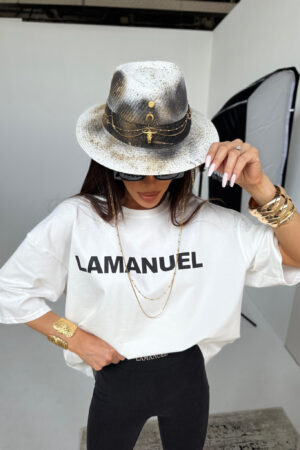 Oversize’owy t-shirt o luźnym kroju z wyraźnie opuszczoną linią ramion i szerokim rękawem. Na przodzie nadrukowane logo lamanuel, które przyciąga uwagę i nadaje charakteru. Uniwersalny fason unisex sprawdzi się w stylizacjach streetowych, sportowych i casualowych. Idealny do noszenia solo lub warstwowo – zawsze robi wrażenie bez wysiłku.