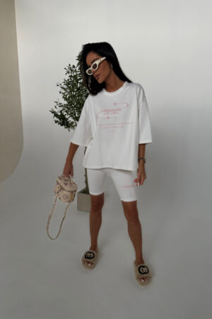 T-shirt o luźnym, oversize’owym kroju wykonany z miękkiej dzianiny bawełnianej. Na froncie znajduje się duży nadruk z nazwą marki oraz hasłem w stylu manifestu, utrzymanym w estetyce futurystycznej. Rękawy sięgające do łokcia i klasyczne wykończenie dekoltu zapewniają komfort noszenia i swobodny charakter. Model idealnie wpisuje się w streetwearowy styl, łącząc wygodę z mocnym przekazem. Połącz go do zestawu z kolarkami BURST w tym samym stylu.