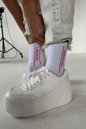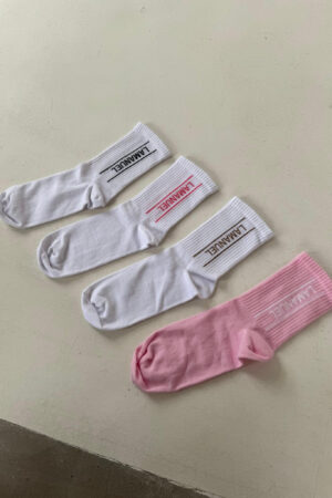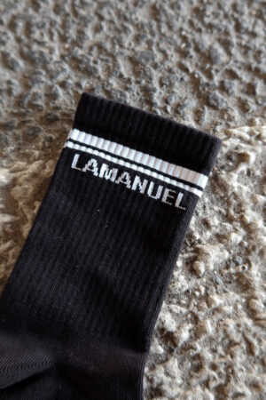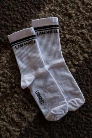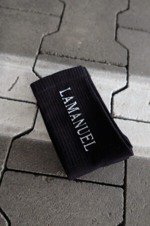 Sportowy vibe w miejskim wydaniu. Klasyczne, prążkowane skarpety z logo LA MANUEL, które idealnie dopełnią look ze sneakersami, workerami albo klapkami. Must-have dla fanek stylu streetwearowego i detali z charakterem.