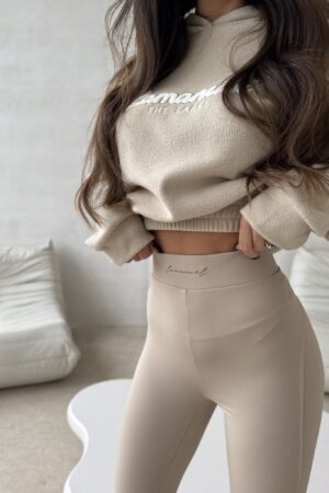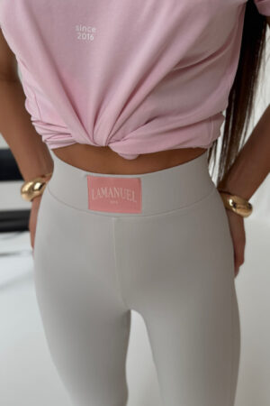 Podkreśl swoją sylwetkę dzięki legginsom z lekkiej lycry, które łączą wygodę i styl. Wykonane z elastycznego materiału, idealnie dopasowują się do ciała, zapewniając pełną swobodę ruchu. Na przodzie znajduje się subtelne, haftowane logo, które dodaje elegancji i wyróżnia te legginsy na tle innych. Unikalne przeszycia na tylnej części legginsów zostały zaprojektowane tak, aby podkreślić kształt pośladków i zapewnić efekt modelowania.