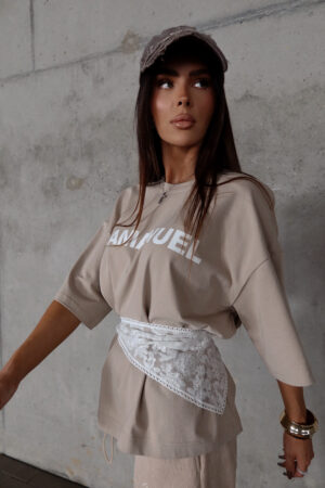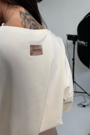 Oversize’owy t-shirt o luźnym kroju z wyraźnie opuszczoną linią ramion i szerokim rękawem. Na przodzie nadrukowane logo lamanuel, które przyciąga uwagę i nadaje charakteru. Uniwersalny fason unisex sprawdzi się w stylizacjach streetowych, sportowych i casualowych. Idealny do noszenia solo lub warstwowo – zawsze robi wrażenie bez wysiłku.